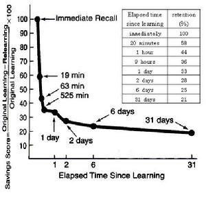 他在 1885 的实验报中表明:人类输入的信息在经过人的注意过程的学习后,便成为了人的短时的记忆,但是如果不经过及时的复习,这些记住过的东西就会遗忘,而经过了及时的复习,这些短时的记忆就会成为了人的一种长时的记忆,从而在大脑中保持着很长的时间。