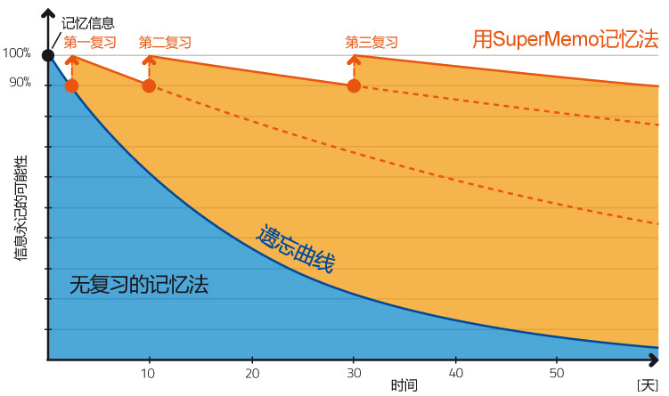 遗忘曲线是描述记忆情况的一种方式,它描绘了记忆的状态及变化趋势。