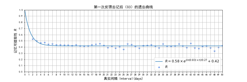 不难看出,Piotr Wozniak 博士的理论公式是 时的特例。然而如果没有参数 ,将无法拟合实际的数据,这使我们非常困扰。