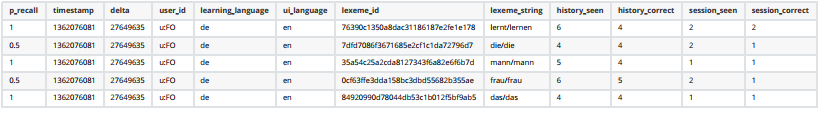 - Getting the Data,获取数据,Duolingo 是已知唯一一家将收集记忆数据公开的公司,如图 15 所示;