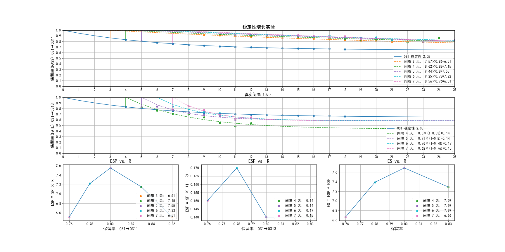 首先,进行了遗忘曲线实验,梳理遗忘曲线所需数据,复现了遗忘曲线相关理论现象;其次,进行稳定性增长实验,简述了稳定性增长与记忆稳定性及记忆可提现的关系,稳定性增长期望相关概念;最后,进行了长期学习实验,跟踪长期用户学习记录,绘制出长期学习遗忘曲线的变化情况。