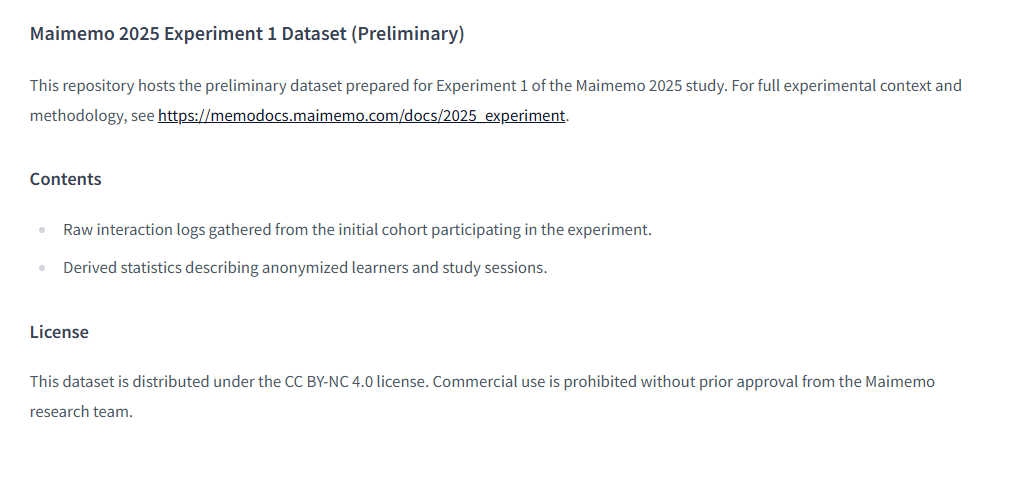https://huggingface.co/datasets/Maimemo/maimemo-algorithm-experiment-01