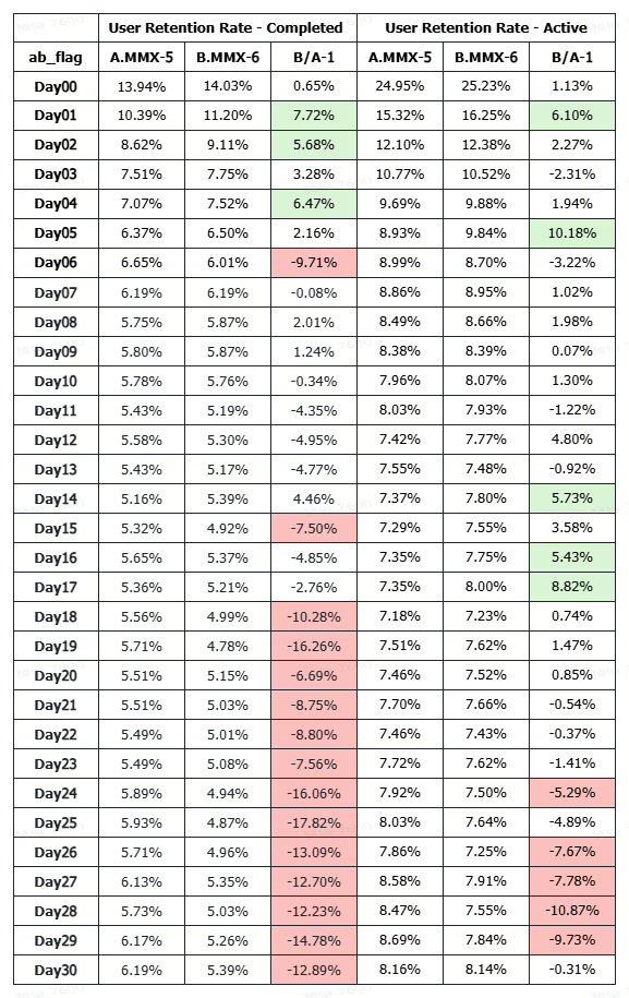 - By Day30, the retention rate had already dropped by approximately 10% relatively.