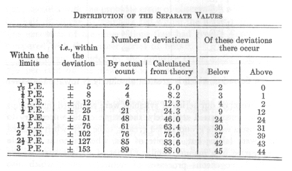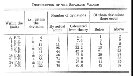 或然误差所覆盖的区间仅占平均值的 7.5%,而早期测试中该比例为 14%。具体的数值分布如下: