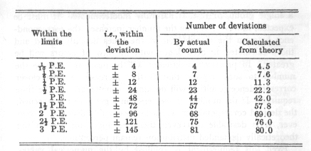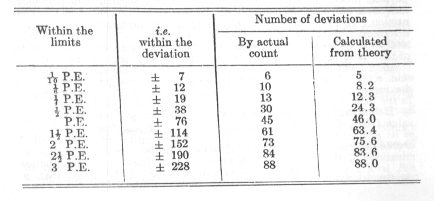 尽管测试的总次数如此之少,但在所有这些案例中,理论计算与实际偏差计数之间的一致性都如此之高,以至于我们有理由承认这些平均值的有效性,当然,前提是要考虑到其较宽的误差范围。