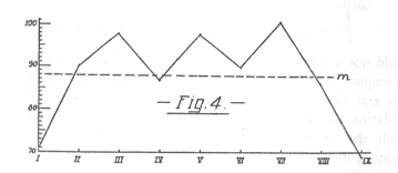 我们只能说,疲劳对数值的假定影响,被另一种我们先验地不那么容易想到的倾向远远盖过了,即:相对较低的数值倾向于被相对较高的数值所跟随,反之亦然。似乎存在着一种心理接受能力或注意力的周期性振荡,而逐渐累积的疲劳,正是通过围绕着一个逐渐位移的中值的波动来表达自身的。[2]